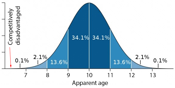 Evidence is that I developed at an exceptionally slow rate. In any large population of ten year-olds, some may be functionally more like seven year-olds and some could pass for a teenager. In childhood the gap between my developmental 'age' and the development of my cohorts widened until puberty, after which their rate of growth slowed, but my rate of maturation didn't slow, which allowed me to catch up with my chronological peers. Or exceed them. I was 25 when people stopped asking me which high school I went to.