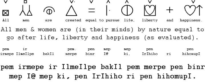 An ability to speak thirteen languages (Murry Gell-Mann included linguistics among his interests, including physics) is far less impressive than thinking well in one, and as Charles Bliss realized, as did Leibniz before him, a written 'algebra of thought' in the form of writable semi-pictographic symbols enables humans to think better ('Thought makes the whole dignity of man; therefore, endeavor to think well, that is the only morality.' — Blaise Pascal). Bliss noted that also being able to speak the symbols would be of some value, but never got around to creating this functionality. A couple of years ago I had a few months of retirement to waste, so I came up with a form of speakable Bliss.