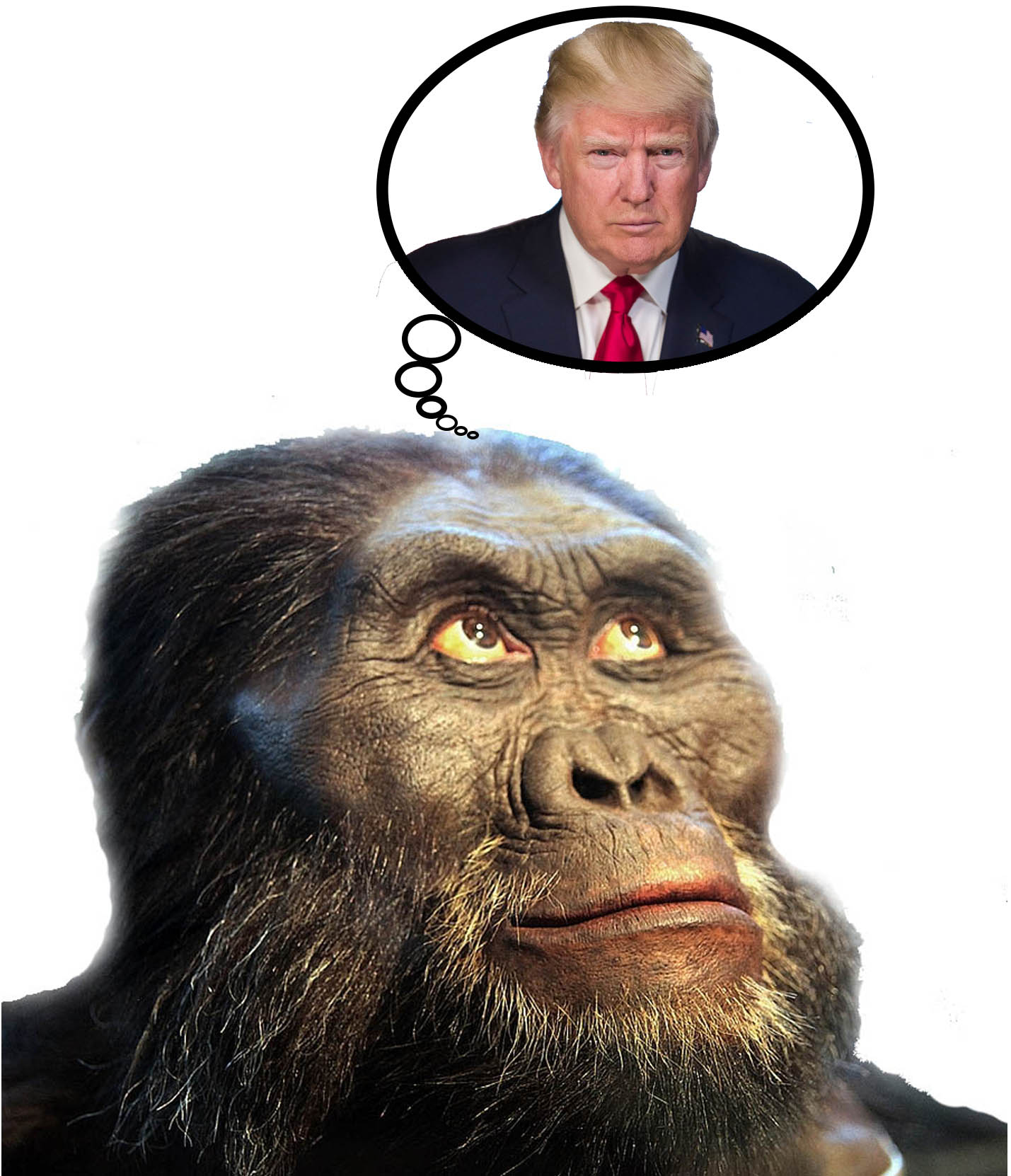 A hominid prayer: The Alpha Male is my leader; I’ll be okay. He helps me get food and water. He leadeth me to the best and safest places. He eases my anxiety. He tells me what to do to avoid getting into trouble, especially with Him. Yea, even though the savanna is full of dangers, I will fear no competitors, for Thou art in charge. Thy strength and Thy vigor they comfort me. Thou protecteth me from other animals (and from Thyself). Thou helpeth me out. I’m doing pretty well… considering. I feel safe in Thy territory and among friends and relatives as long as I am in Thy troop; and I submit and accept Thy dominance forever (or until someone replaces Thee.)