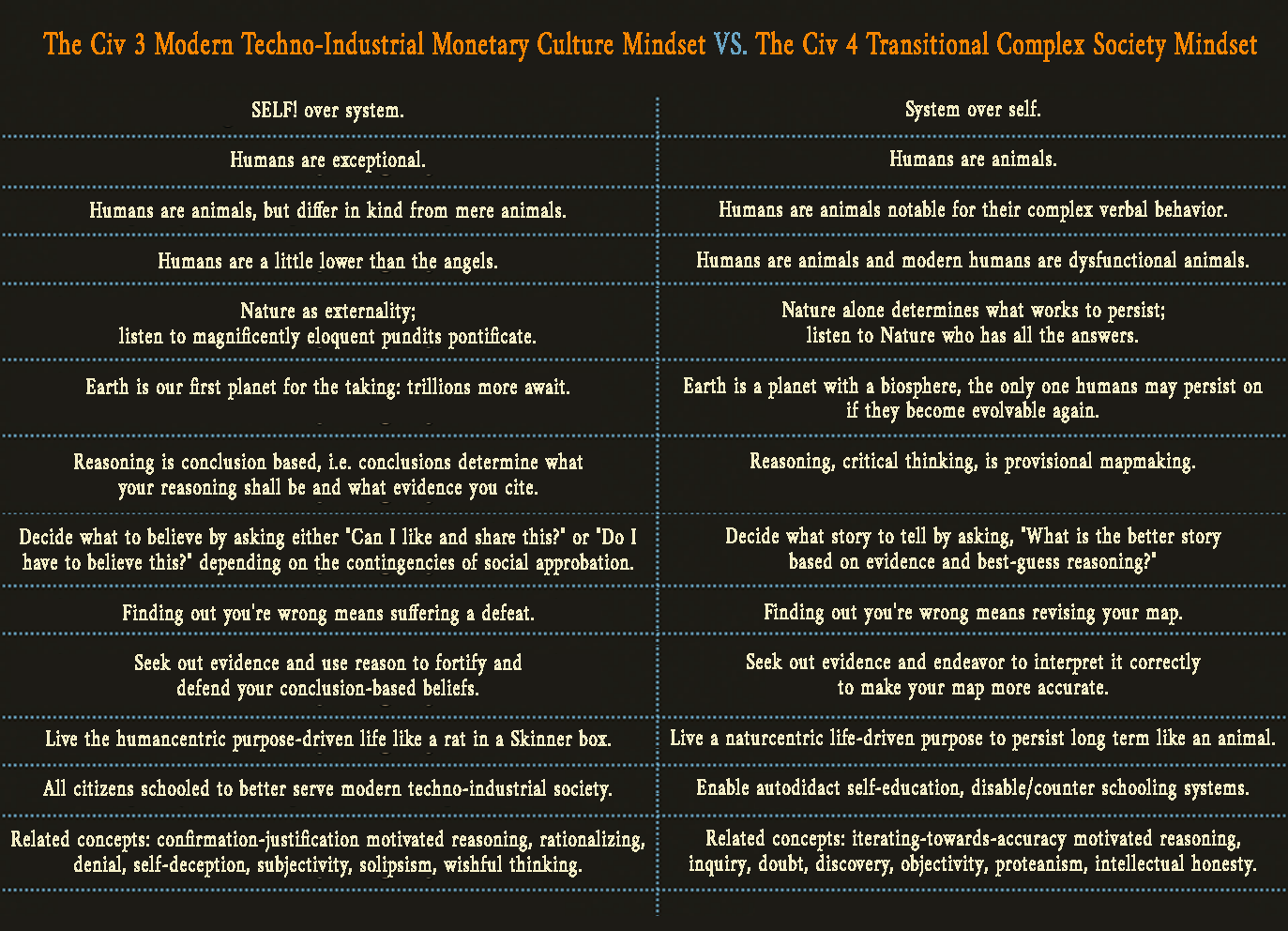 If a consensus narrative about life, the universe, and how to live properly with a planetary life-support system emerged based on listening to Nature who has all the answers, a New Education system, formal and informal, would be ground-zero for a Civ 4 society that, if it were able to transition to a viable Civ 5 society, could have a different outcome for humanity's descendants.
