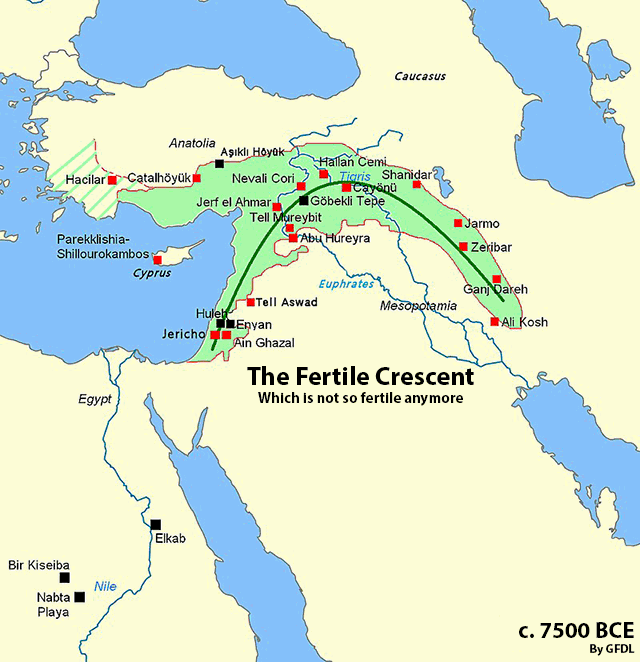 Early settlements in the Fertile Crescent were by foragers within high productivity wetlands having a high diversity of resources that were not subject to long-term storage. Settlements remained relatively small and egalitarian. For empire building, later grain production was selected for as it could be taxed, stored, and stolen. Payment in grain served to create the early monetary culture we are all products of. "Civilization" could be viewed as a pathology enabled by grain production, but we products of civilization do not like that story. We remain for, and not "Against the Grain".