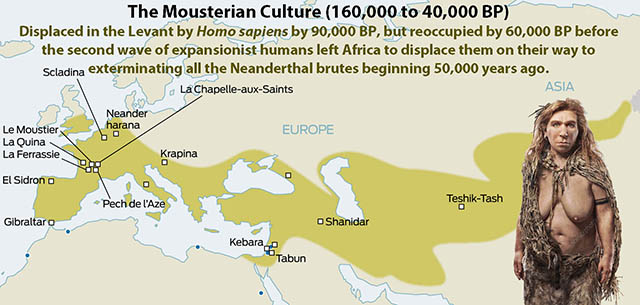 The first character to strut their stuff is ‘Early Man’, but from the above, with a focus on the Levant, the first three and a half minutes should feature competitive displacement, no slaughter implied, starting with Homo erectus, displaced by Heidelbergensis, then Neanderthal, then H. sapiens sapiens pre-expansionist form of us that displaced Neanderthal, who 60k years ago competitively displaces us.