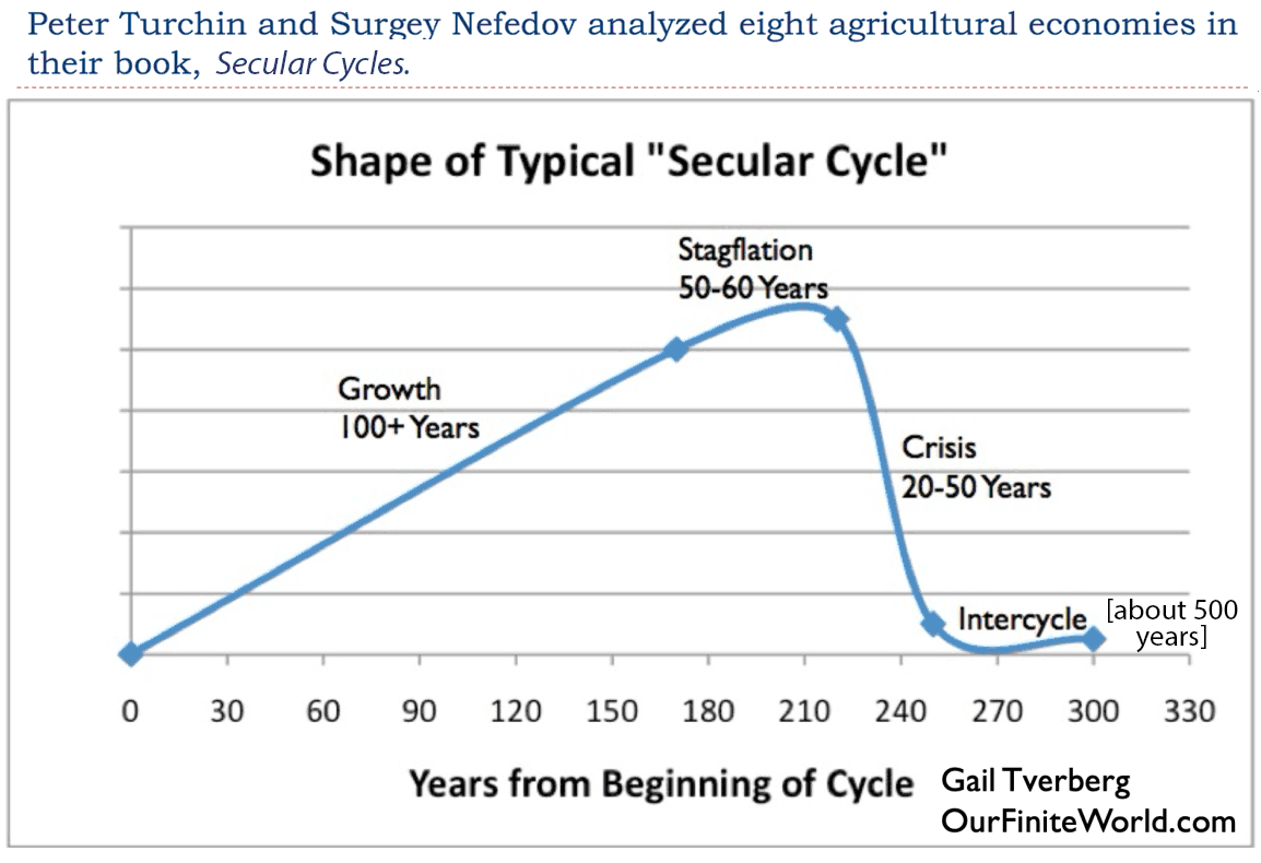 From Alice Friedemann's a more detailed list of the phases derived from the table at the end of Chapter 1 in Secular Cycles:
