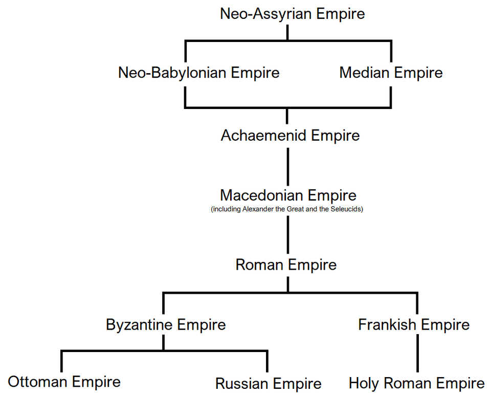 The first empires were empires of belief. When agriculture allowed an area to support many more humans than hunter-gatherers, the agriculturalists, whether plant (Mesopotamia, Indus Valley, et al.) or animal based (Indo-Europeans, Mongol), displaced them, like it or not, to become agrarian empires. The large populations supported armies and those agrarian empires who transition to military empires replace those who do not, like it or not. Empires that spread by use or threat of force develop into city-states — political empires that evolve into nation-states whose development climaxed mid-20th century. All empires have been a mix of power: the power of religious belief, economic power, political power, and military force. The Euro-Sino Empire is a global industrial economic empire in that commercial interests dominate religious, political, and military interests.