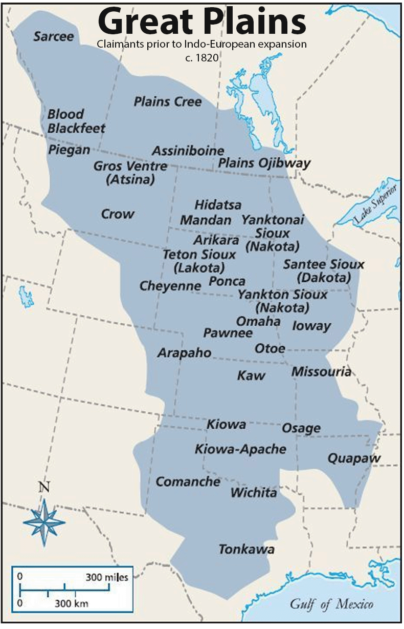 1700–1890 CE (190 years, 250-60 BP): The Plains Equestrian Nomads. When the Agrarian Plains Village peoples acquire the horse as a trade item, some used it to hunt bison from horseback and rapidly expand as a conquest culture, climaxing with the Battle of Little Bighorn in 1876 and surrender in 1890.