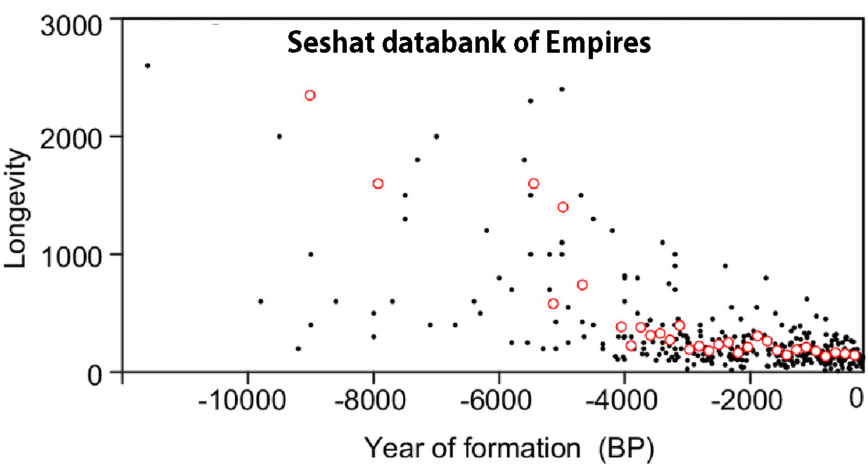 Keep in mind that many small regional “empires” have come and gone in the last 75,000 years from Auno₀ level alpha-male dominated to chiefdom level complex societies of 1k to 50k+ size without archaeology noting or history naming them, vastly more than those named above. Empire building selected for behavioral modernity, for the modern form of human.