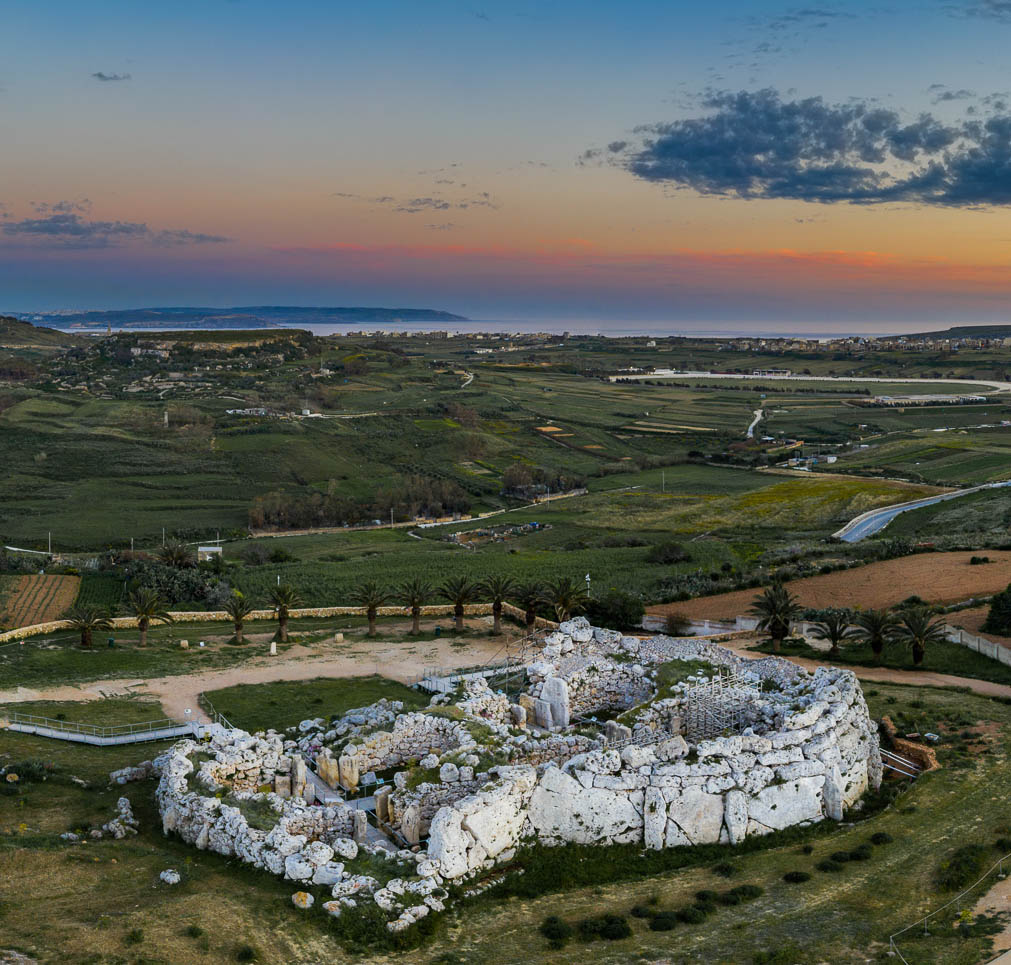 From 4000 BCE to 2500 BCE, complex society arose, megalithic temples with a fertility goddess theme were built prior to Egyptian pyramids. The Ġgantija megalithic temples [e.g. below and take a walking tour] built 3600-2500 BCE are the world's second oldest existing man-made religious structures after Göbekli Tepe/Karahan Tepe.