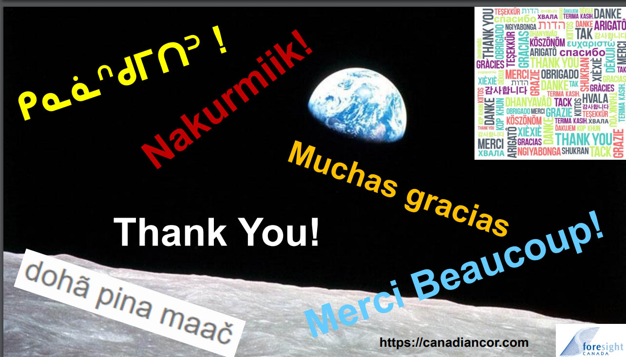 Thank you Ted and Ruben. It is indeed my privilege, and my pleasure, to thank you on behalf of the Canadian Association for the Club of Rome. This has been again an absolutely phenomenal presentation that you've given us, both thought provoking and very provocative. I think, I think this is food for thought for so many of us, and by what I've seen on the chat line, it certainly shows that you've got people thinking, so thank you for that. For those of you who are not familiar with CACOR we are an organization, a not-for-profit organization, you are welcome to come and look at our website, canadiancore.com, you will find this particular presentation and all the other over 100 presentations that we have had since the beginning of the pandemic are available on our youtube. You can access that by looking at the stay informed section and signing up for the stadium forum section on our website. You can also find information about becoming a member of CACOR. If you're interested as well if you do go on to our youtube site, I would really strongly encourage you to subscribe to it so that you will be getting notifications for all of our things that we're doing, so again, thank you Ruben, this has just been wonderful, and with that, thank you very much.