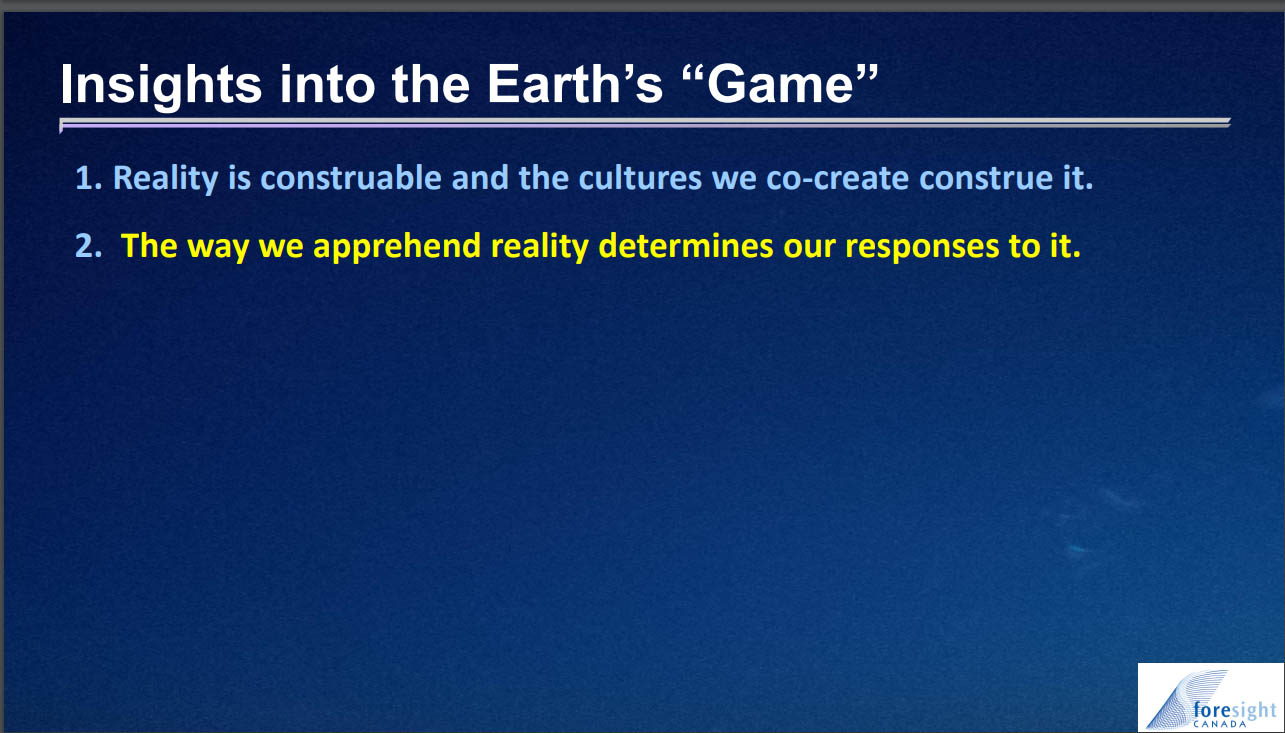 I'm now unmuted. My starting point is we really have to deal with the real world. My context for this was 50 years ago I saw disaster coming because I'm a climate scientist and I started to ask around, how do we merge science and wisdom because the mechanical view of science was clearly going to fail in relationship to the earth, and what I found along the way, quite soon in fact, I was just simply sent to India, and is that the living earth system is now consciously taking over the climate system because it's responsible for the earth and it's not doing it with respect to us. The human beings who are in charge of everything is doing it because it's responsibility, and our job is to really connect, which we can do to the living earth system and cooperate. Now, that's a radical change in perspective from we're in charge, but it is the step we have to make because it's really happening.