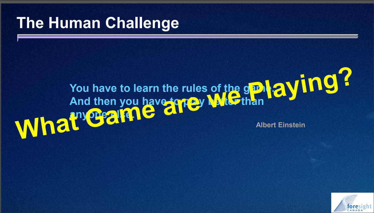 So what game are we in? If we don't understand the game we're in, we're not likely to play well.