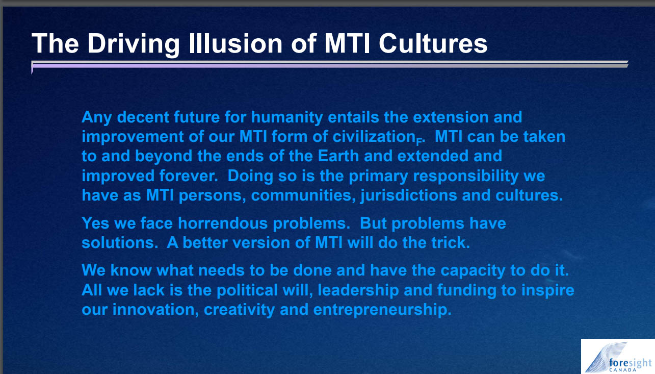Well, we're playing the MTI Game and we believe that any decent future for humanity entails the extension and improvement of our MTI form of civilization MTI can be taken to and beyond the ends of the earth and extended and improved forever. Doing so is the primary responsibility we have as MTI persons, communities, jurisdictions, and cultures.