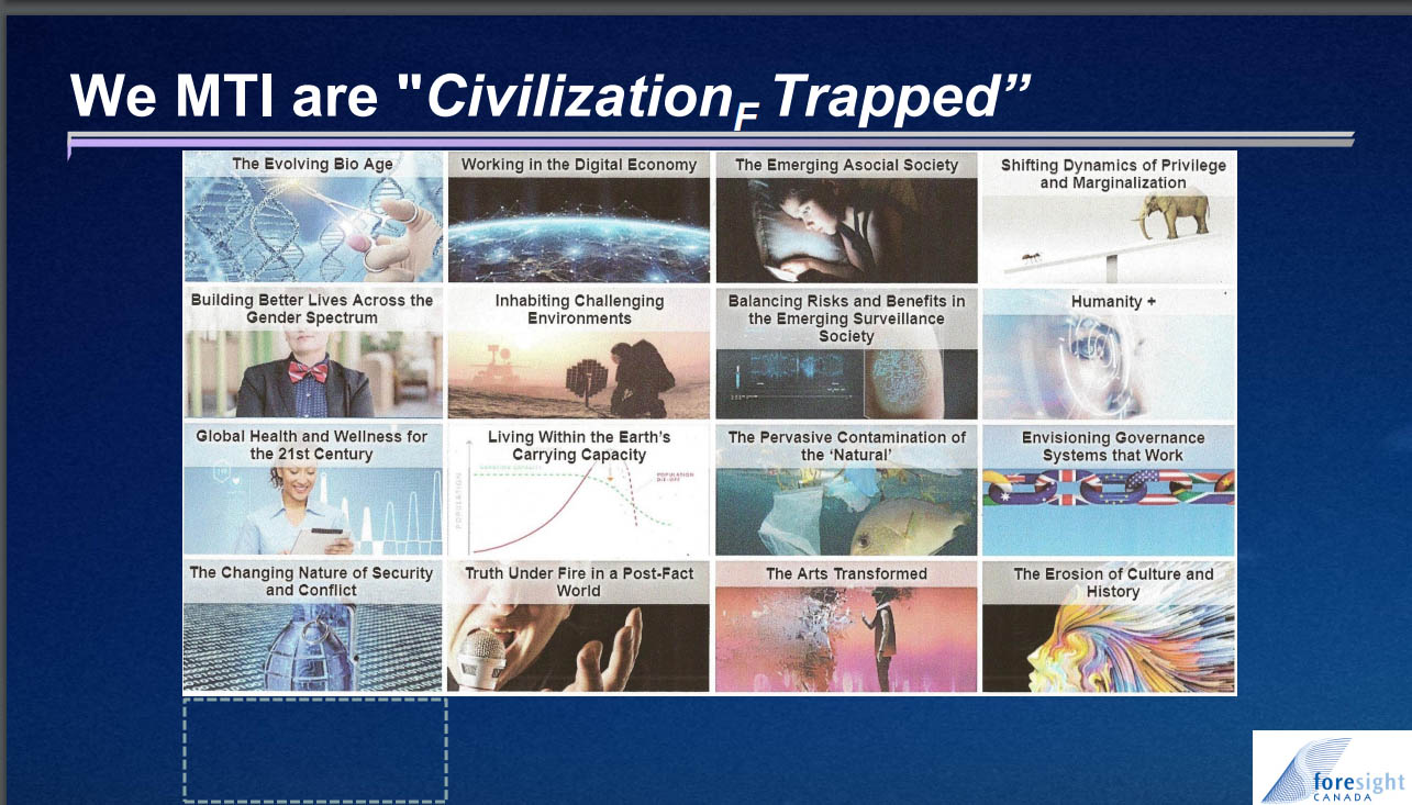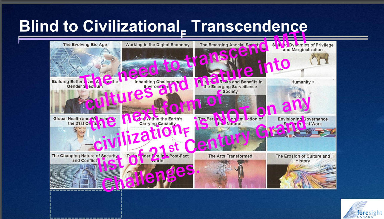 So the thought, that the need to transcend MTI cultures and mature into the next form of civilization, is not on your list and what's more, it's not on the list of any grand challenge of any institution in the world.