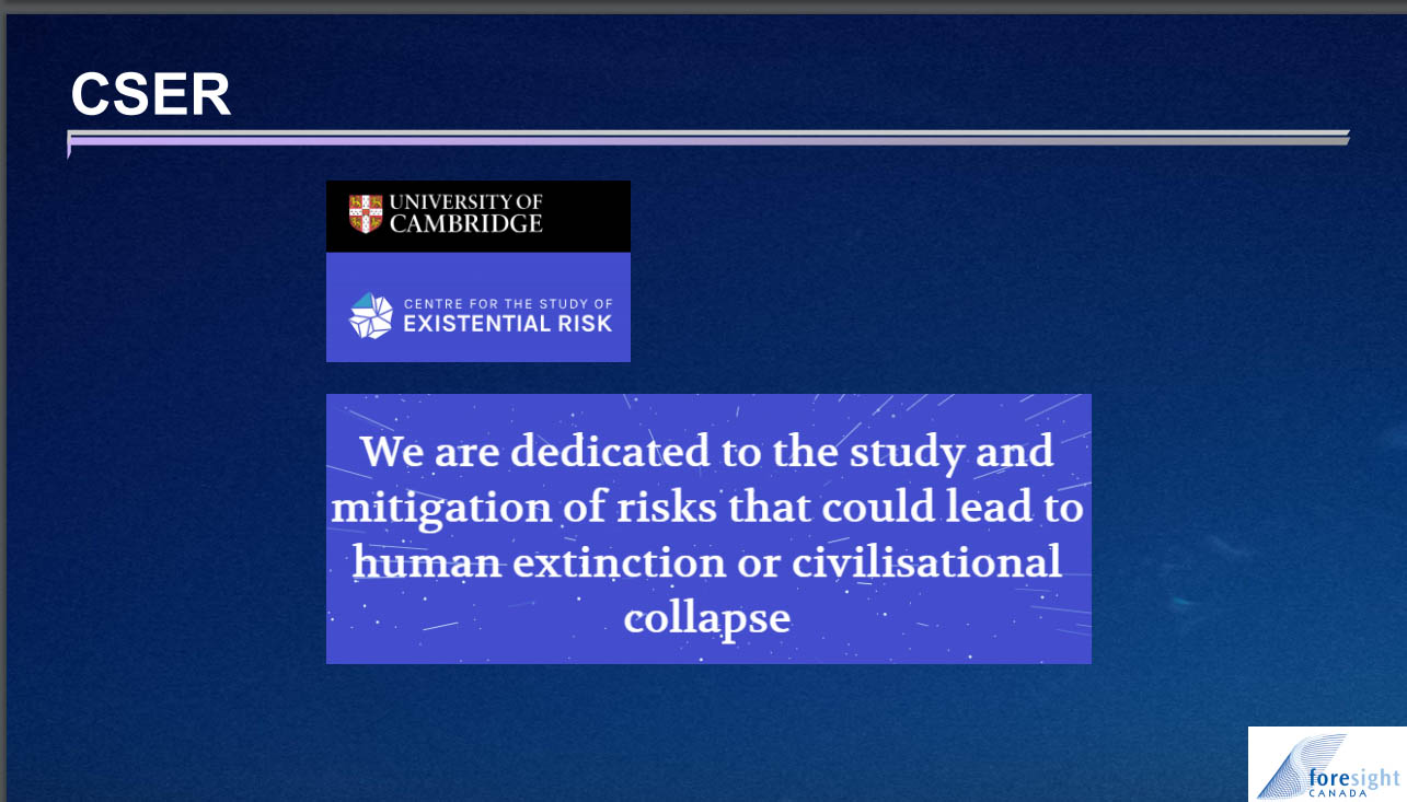 Cambridge was the Second Institution for Existential Risk, Oxford was the first, they're growing kind of like mushrooms in the spring because in certain universities it's fashionable to have one of these things, and Cambridge says we're dedicated to studying, mitigation of. the risks that could lead to human extinction or civilizational collapse. They do not have MTI cultures on their list, nor do any of the others.