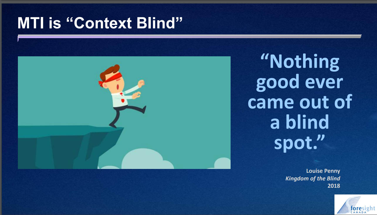 My point is that MTI cultures, because of their very nature, are context blind, and if you are context blind then you don't do the future very well because the future is entirely a space where context is king.