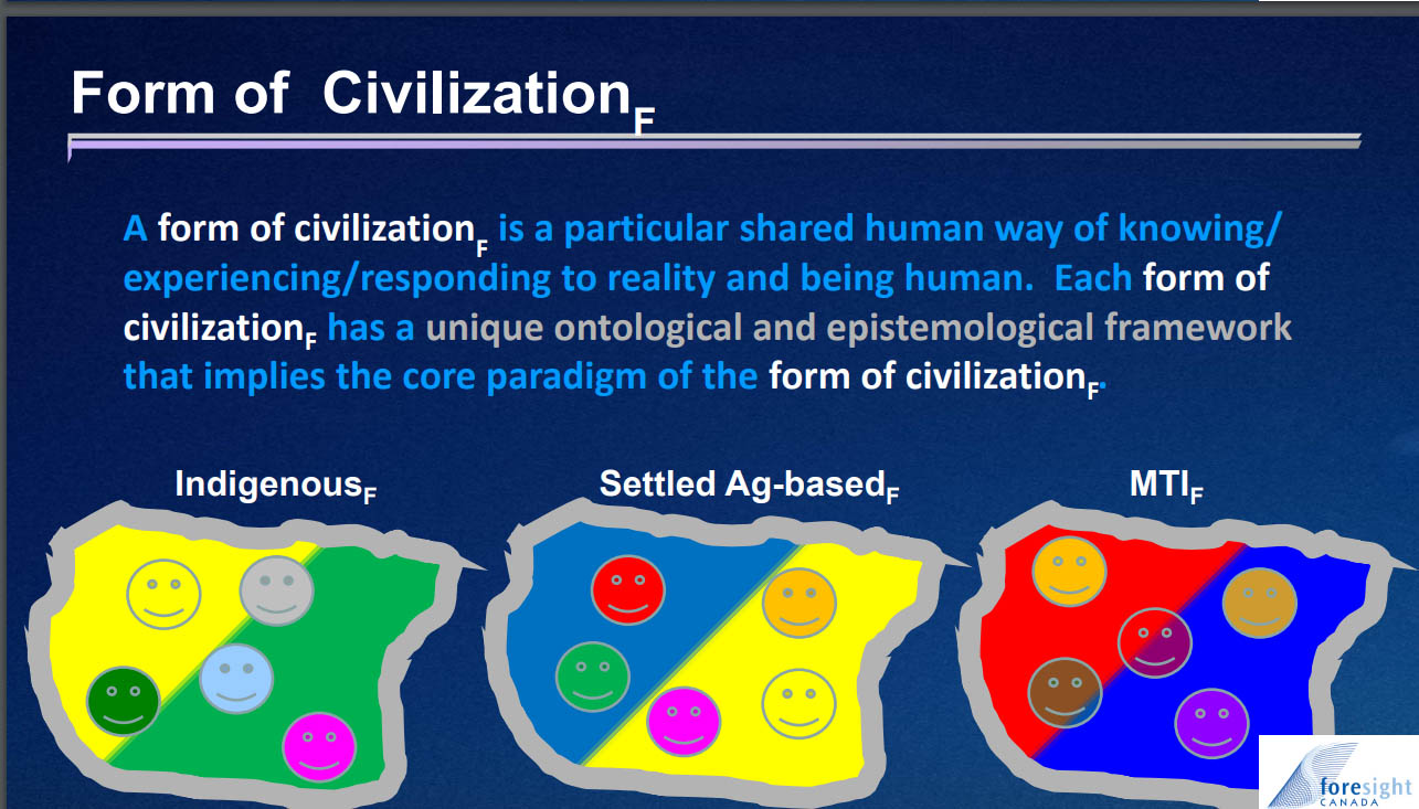 So a form of civilization is a particular shared way of knowing experiencing and responding to reality and being human. Each form of civilization, and here's an image of three of them, they have unique ontological and epistemological frameworks that implies a core paradigm of the form of civilization. So now we're getting down to what defines a form of civilization, and how can we tell one from another.