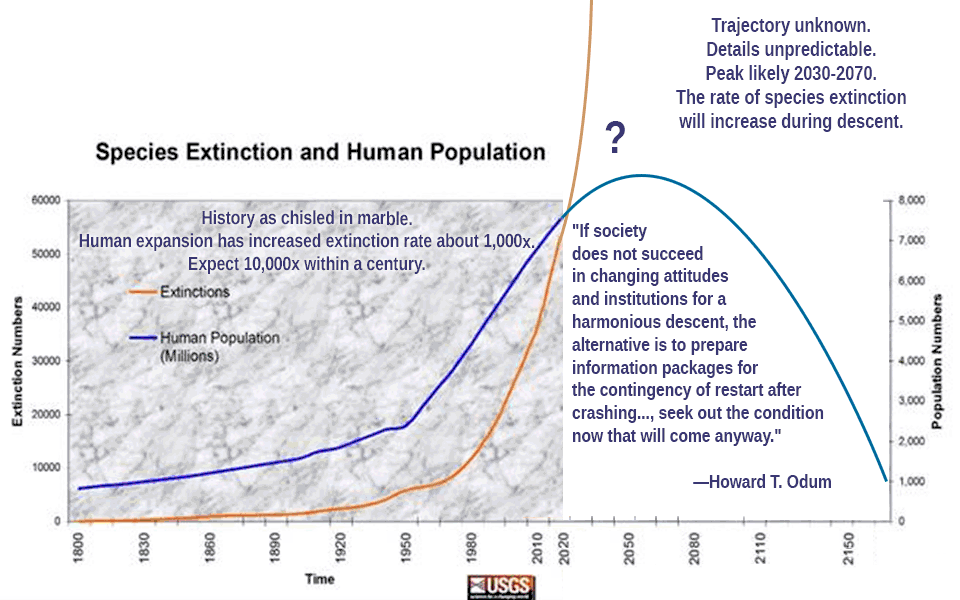 By the 1980s transitioning to a steady-state world was no longer possible as we humans were in overshoot, which by definition meant descent would follow, if not for us, then for you products of the twenty-first century.