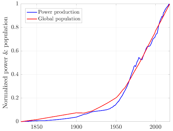 About 90 percent of industrial agriculture's output depends on fossil fuel inputs and the rest on the overexploitation of planetary resources. Energy inputs (blue line) will decline and sooner is better (from the POV of all other life on the planet), but human population will follow. XR, et al., can't even think about the elephant in the room much less tell the truth about it.