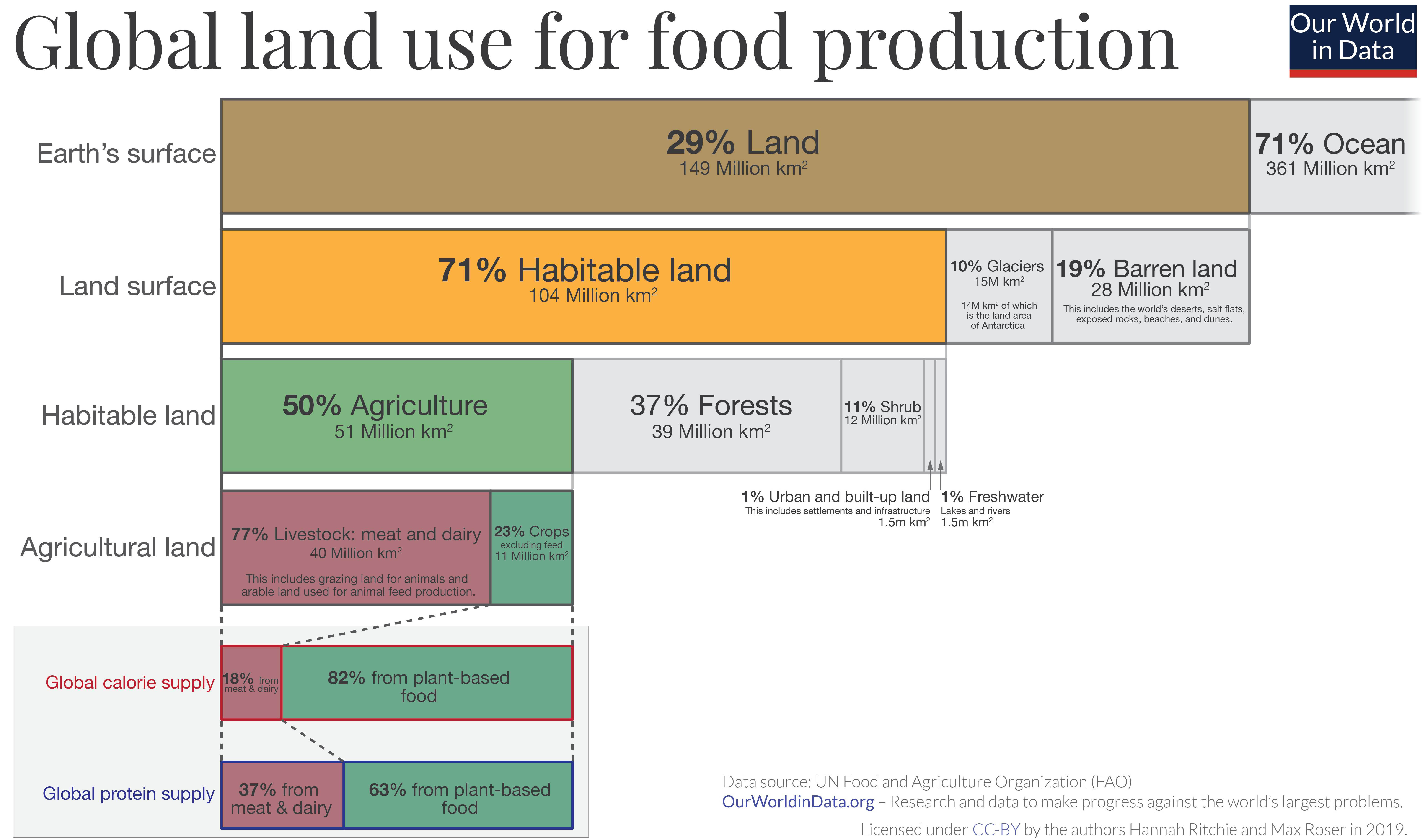 The land area to abandon is 83.2 million km2 (32.1 million sq mi) or 83.2 trillion ha (20.6 trillion acres).