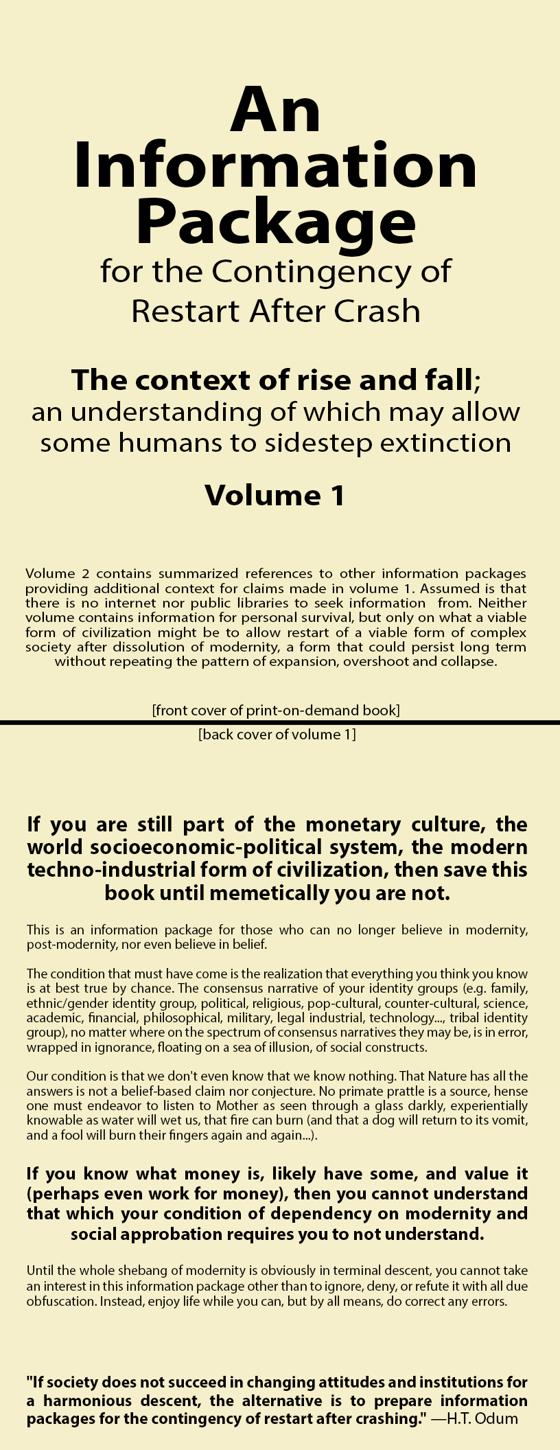 No modern human can Like or Share this story, especially if details are added at book length (all irrefutably solid/referenced) even among CACOR members (I'm guessing, and know nothing, can be wrong about everything or 'not even wrong'). But there may be some value in telling it. I could write a book that, before being tossed on a fire to keep warm, one of the last humans holds it back for a future fire to read it first, and thereby know why they are about to die.