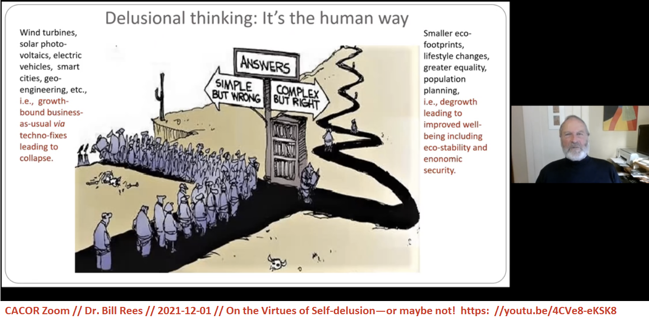 'If we don’t address human population, consumption, and more generally, overshoot, then none of these little efficiency gains are going to matter much. And remember William S. Jevons: Efficiency does not save resources. Human mechanical efficiencies increase resource consumption. Growth swamps efficiency. And so forth. We’re still trying to solve overshoot by building machines, because that’s what we are used to doing and it bolsters the profiteers within our anti-ecological economic system, but building machines — and our economic system — are major causes of overshoot.' —RW