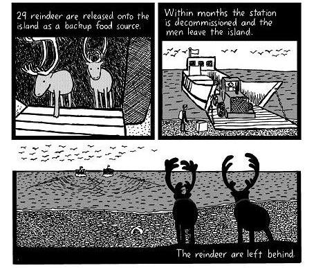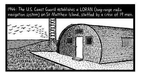 In 1944, the United States Coast Guard established a LORAN station on the island, with 18 personnel (LORAN = long-distance radio navigation system). And 29 reindeer are released on the island as a reserve food source.